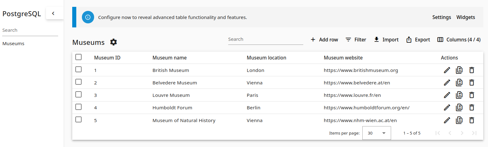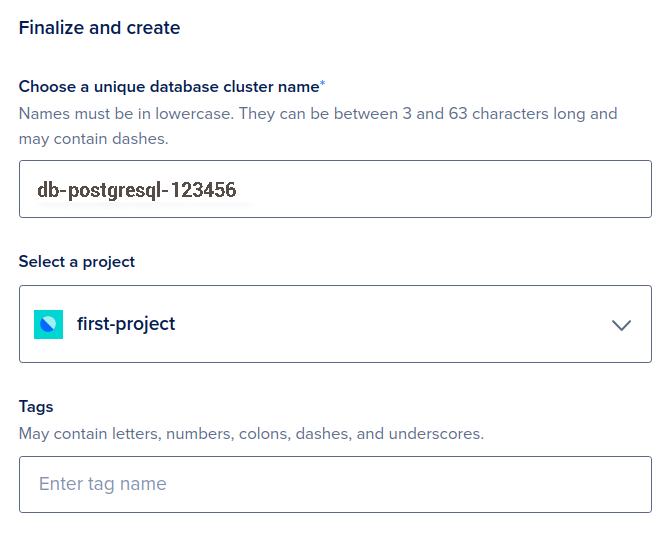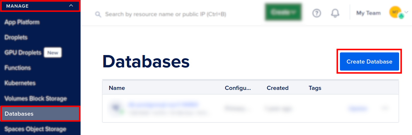 You need to create at least one table in your database or migrate an existing PostgreSQL database to DigitalOcean. Use a database management tool of your choice to access the DigitalOcean cluster.