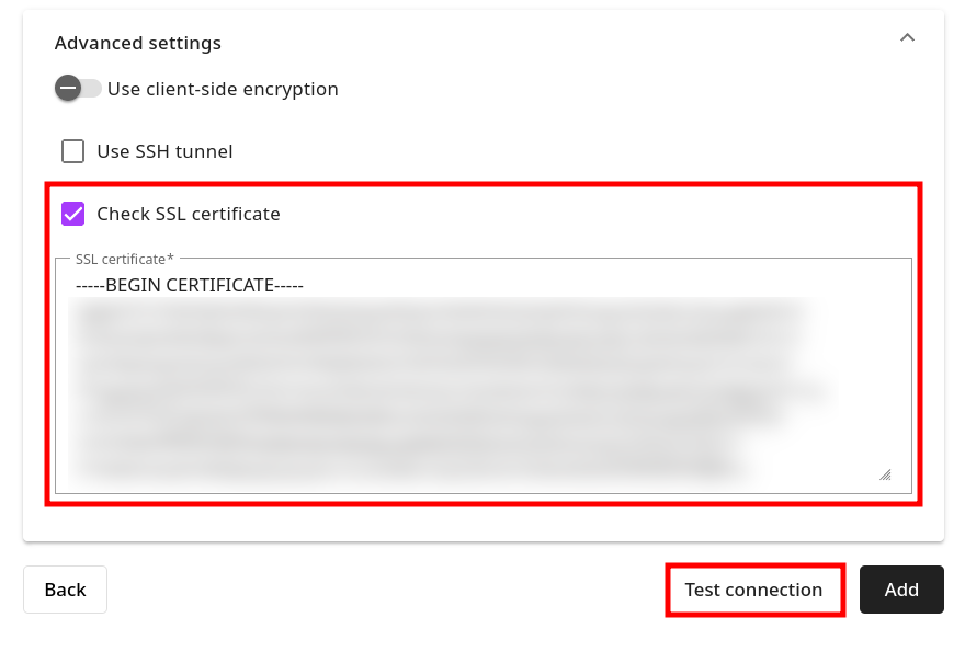 Expand the Advanced settings and mark the option Check SSL certificate.